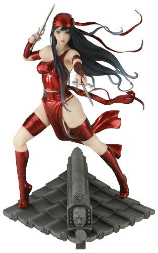Kotobukiya is proud to present a new Marvel Bishoujo statue: Elektra. Holding her signature weapon, the sai, Elektra stands on the edge of a Japanese castle with a Daredevil Onigawara (Japanese gargoyle-like roof tile). Beautifully sculpted in 1/7 scale, Elektra measures 9.8" tall in a battle-ready ninja pose. The Bishoujo Elektra is based on an illustration by renowned Japanese master illustrator Shunya Yamashita.